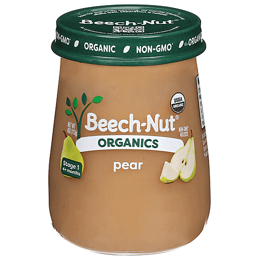 Beech-Nut Organic Baby Food is made with USDA Certified Organic and Non-GMO ingredients. Our pear organic baby food puree has no artificial preservatives, colors or flavors and no added sweeteners--just what you'd expect for baby's first foods. Our fruits and veggies are gently cooked to preserve color, flavor, and nutrients to create a puree that's perfect for introducing solids. Free of the following allergens: dairy, gluten, peanut, soy, egg. This stage 1 baby food jar is ideal for your baby 4 months and up.