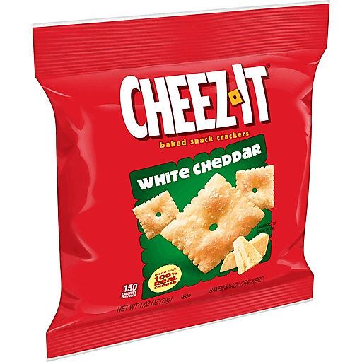 Make snack time more fun with Cheez-It White Cheddar Baked Snack crackers - bite-size crackers that are baked to crispy perfection. Cheez-It Baked Snack Crackers are the real deal - made with 100% real cheese that's been carefully aged for an irresistible taste. Each perfect square is loaded with bold, cheesy flavor that hits your taste buds with every delicious mouthful. This single-serving pouch is perfect for on-the-go snacking, a cheesy addition to a packed lunch, or even just a quick bite around the house. Cheez-It Baked Snack Crackers are great to bring along on field trips, camping, hiking, trips to the park, picnics, outdoor concerts, everyday errands, and more. The antidote to flavorless crackers, Cheez-It White Cheddar snack crackers are packed with irresistible cheesy flavor and can make a great addition to homemade snack mixes and party mixes. You'll love the one-of-a-kind flavor of real cheese in every tasty handful of Cheez-It White Cheddar Baked Snack Crackers.